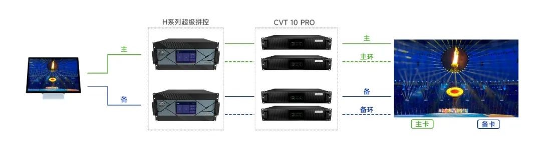 主配景+太阳神鸟燃烧塔,,,,,接纳j9游国际站官网星云H系列超等拼控+CVT10Pro 光电转换器+Armor吸收卡,,,,,知足现场超远距离传输场景。。。。。。。。